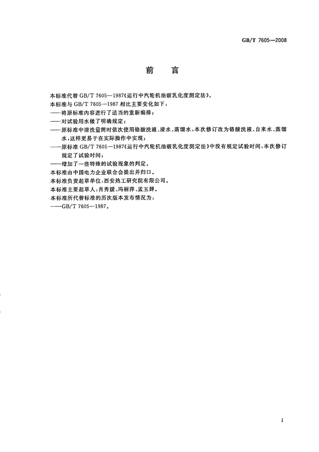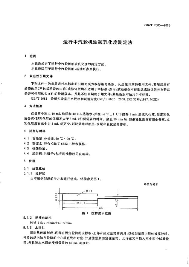 GB/T 7605-2008 《運行中汽輪機油破乳化度測定法》